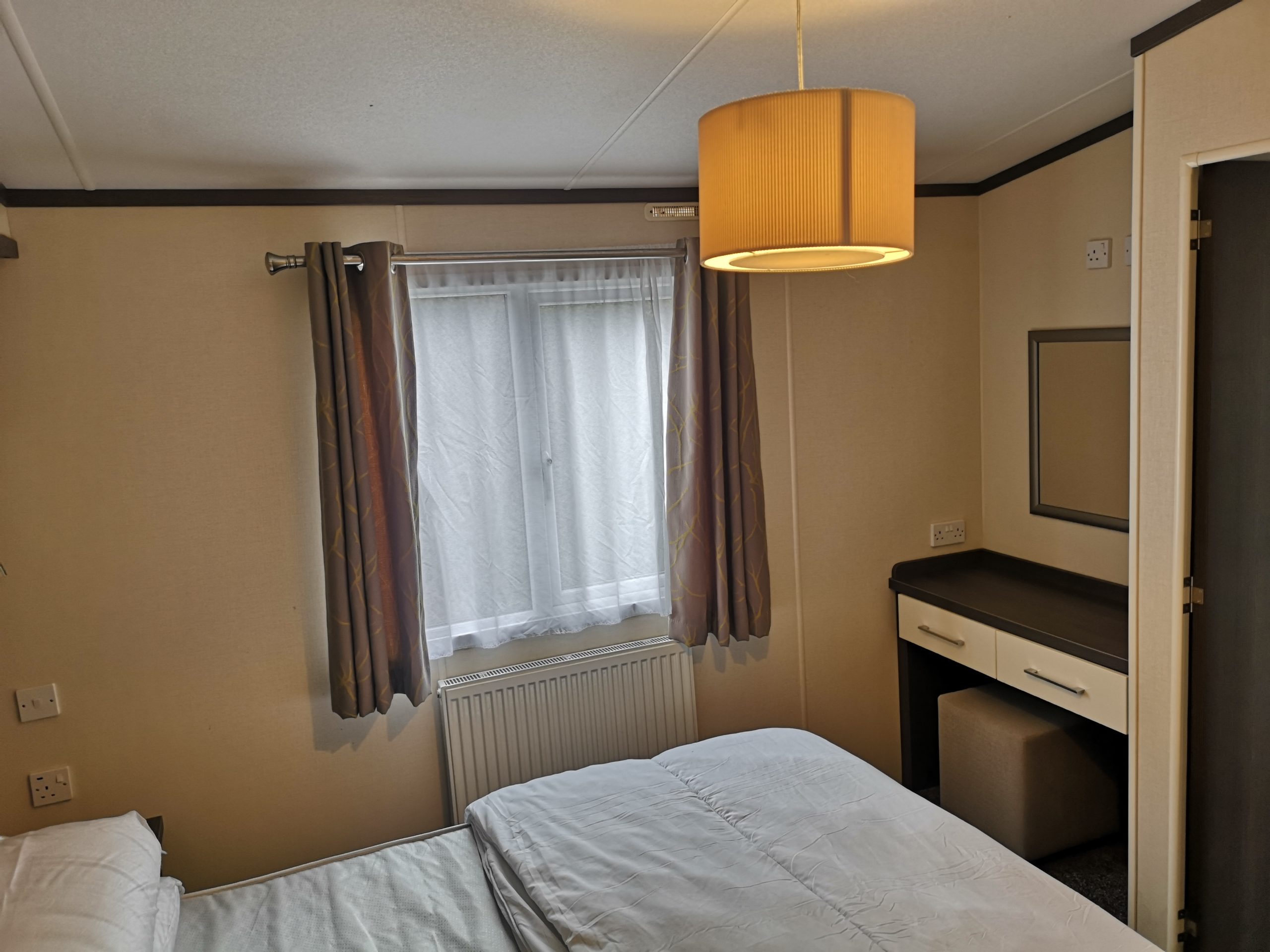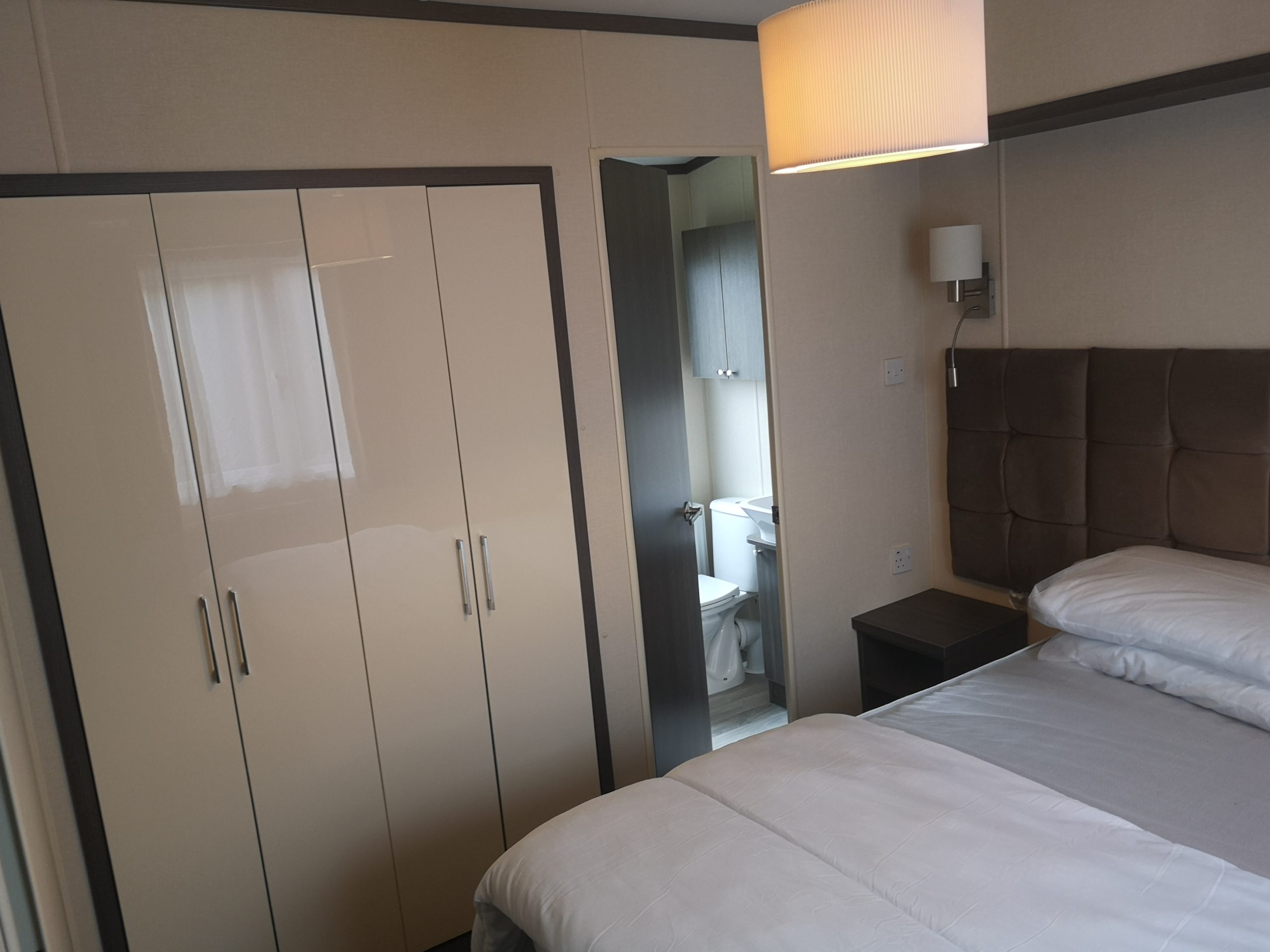 The 443 Somerton is a new caravan situated in the Oaks Forest area of the park and is a luxurious 2 bed 6 berth caravan. It has French doors that roll onto a gated side deck and has a table & chairs. Double glazing, full central heating and en-suit toilet with shower to the master bedroom with a King Size double bed and TV on the wall. In the lounge is a TV/DVD and a full kitchen inventory, with a full fridge freezer, iron and ironing board etc etc……… Thank you for looking.