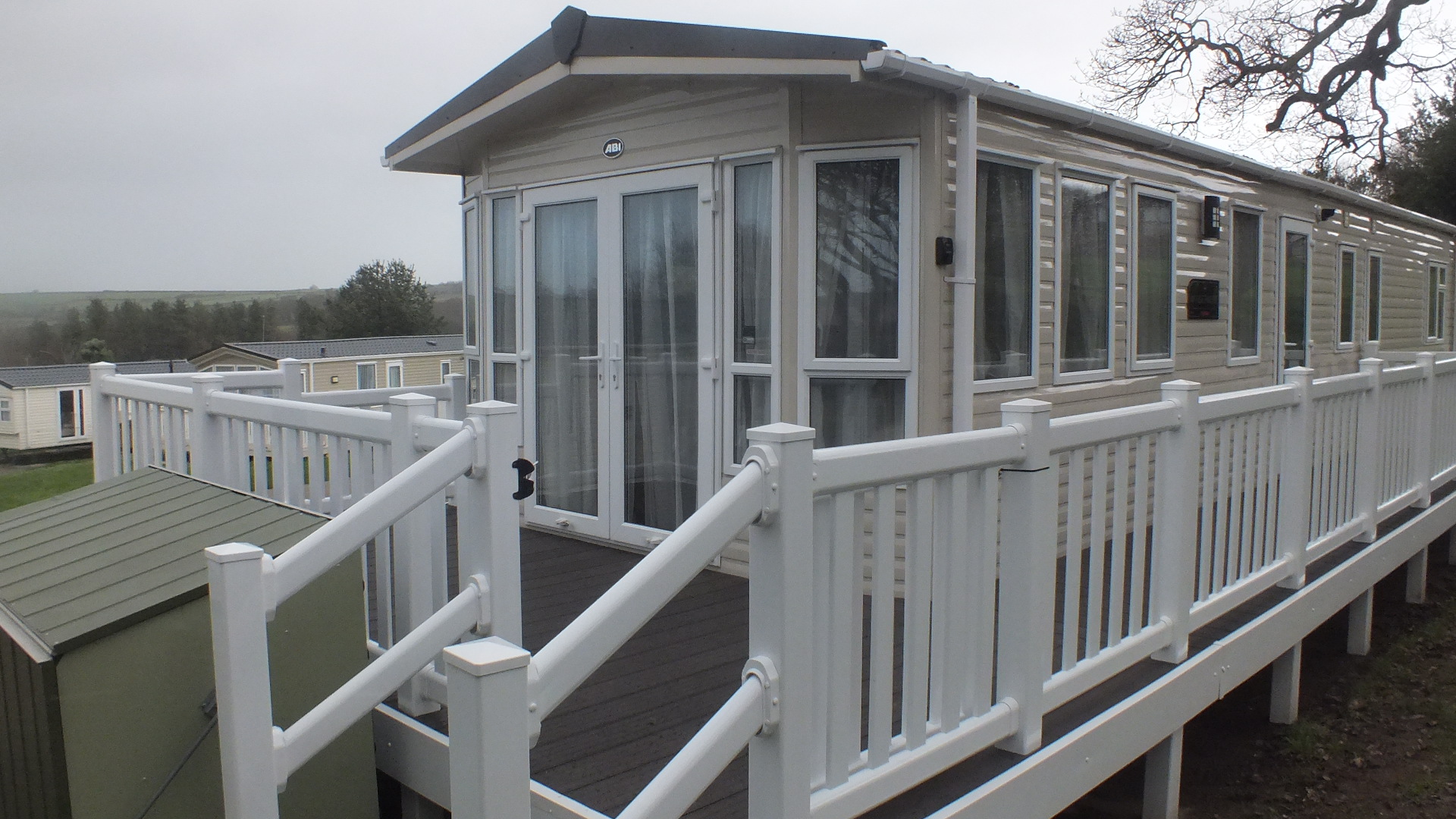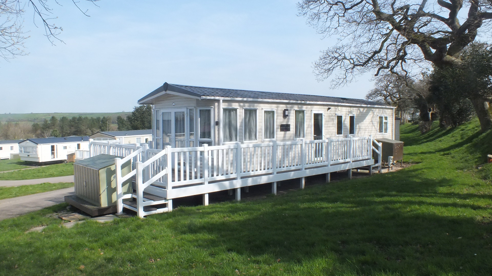 This caravan is the new 625 Windermere 2 that is located in Sycamore forest with fabulous views of the Jenny’s lake. It is a 8 berth caravan that has 3 bedrooms and a pull out in the lounge. It is located 40ft away from our other caravan 601 Jubilee and just down a bit with all so good views of Jenny’s lake is the 606 Windermere, all 3 caravans are in Sycammore Forest.