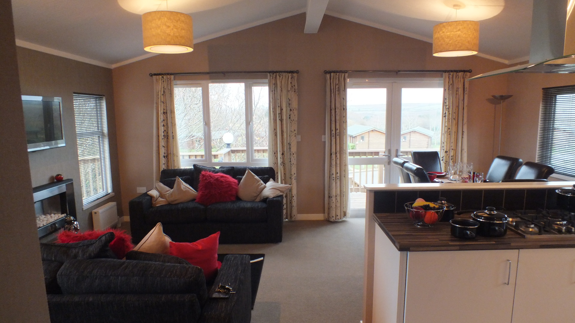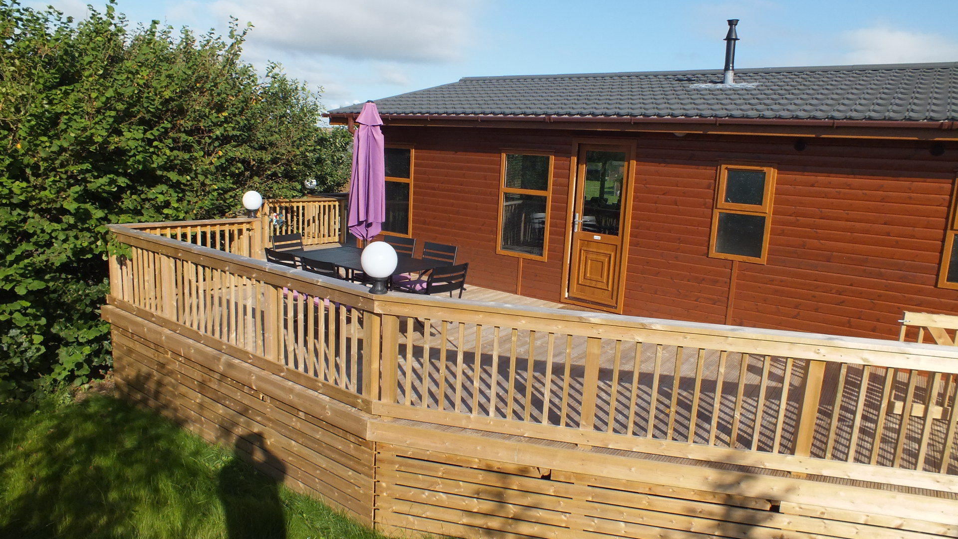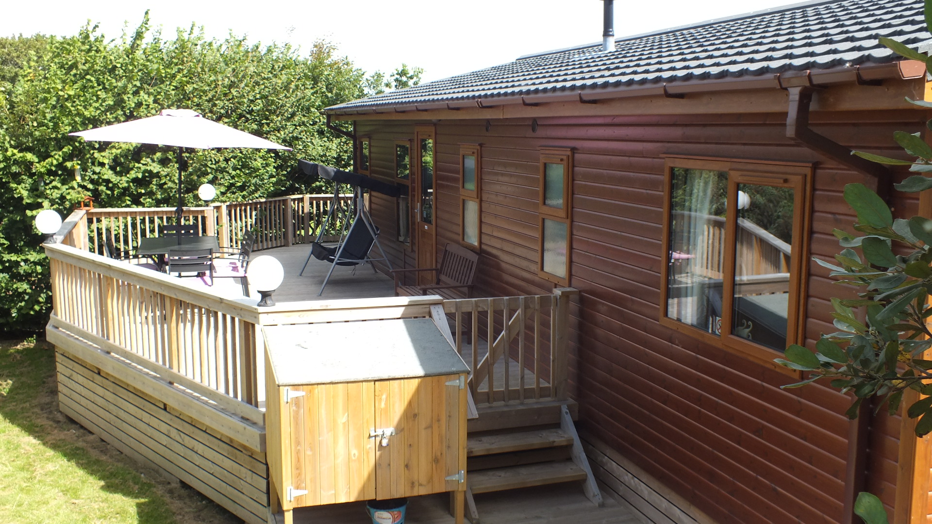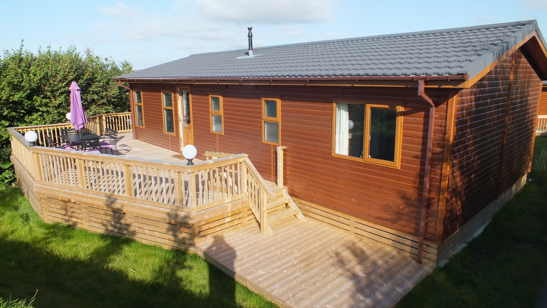 The Wessex Lodge is our latest addition this year, it is a 3 bed Wooden Lodge and it is located on pitch number 52 opposite Jenny’s . If you want Luxury then this is the one for you, it has quality, peacefulness and privacy on the decking and it is 40ft long x 20ft wide and is double glazed & central heated.The Lodge has 3 spacious bedrooms, with the master having en-suit. There is a TV in all bedrooms. Family size bathroom, with a full size bath. Full kitchen and utility room with washing machine. Overlooking at the side from the decking is a nature field, so the country side rolls onto the decking. This is the highest spec most sort after lodge on the Parkdean White Acres park.